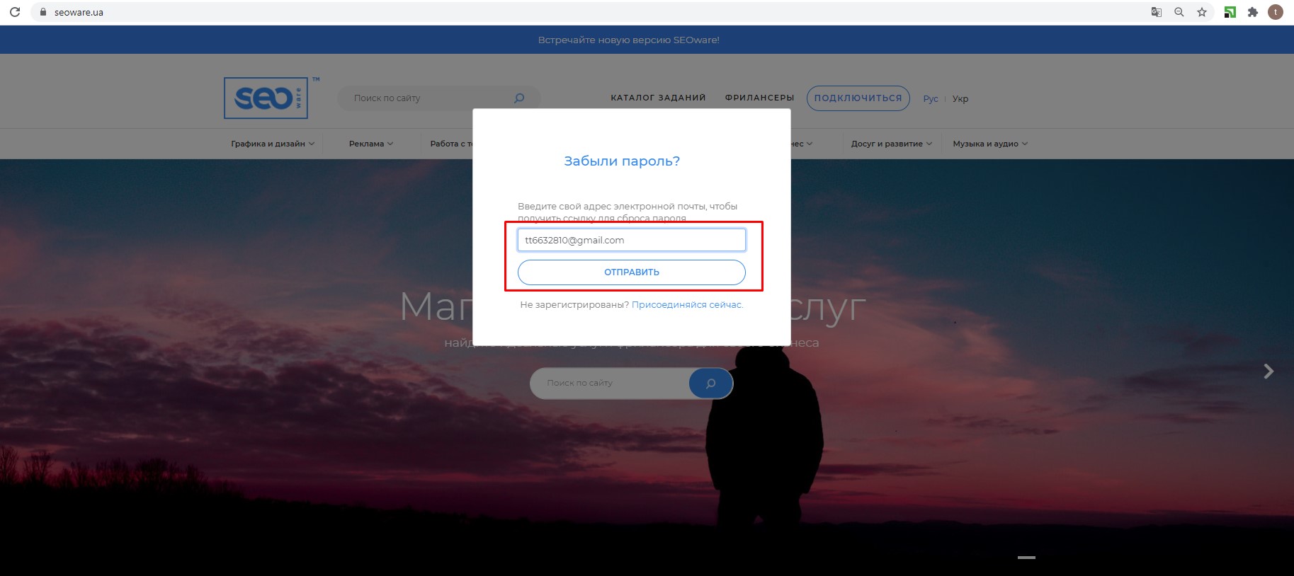 Если Вы желаете изменить пароль для входа в систему или забыли его, воспользуйтесь ссылкой "Забыли пароль?". Введите email адрес для восстановления пароля и нажмите на кнопку "Отправить".