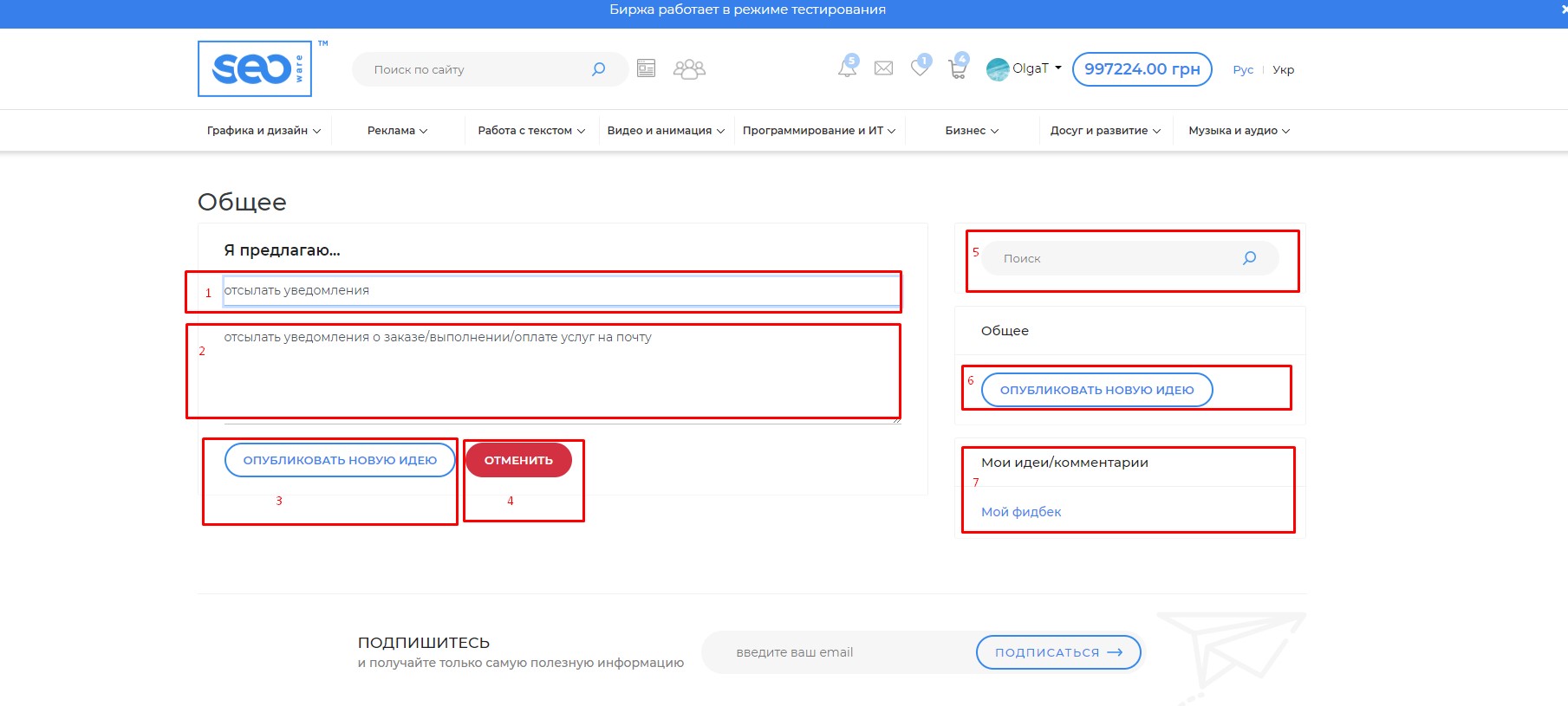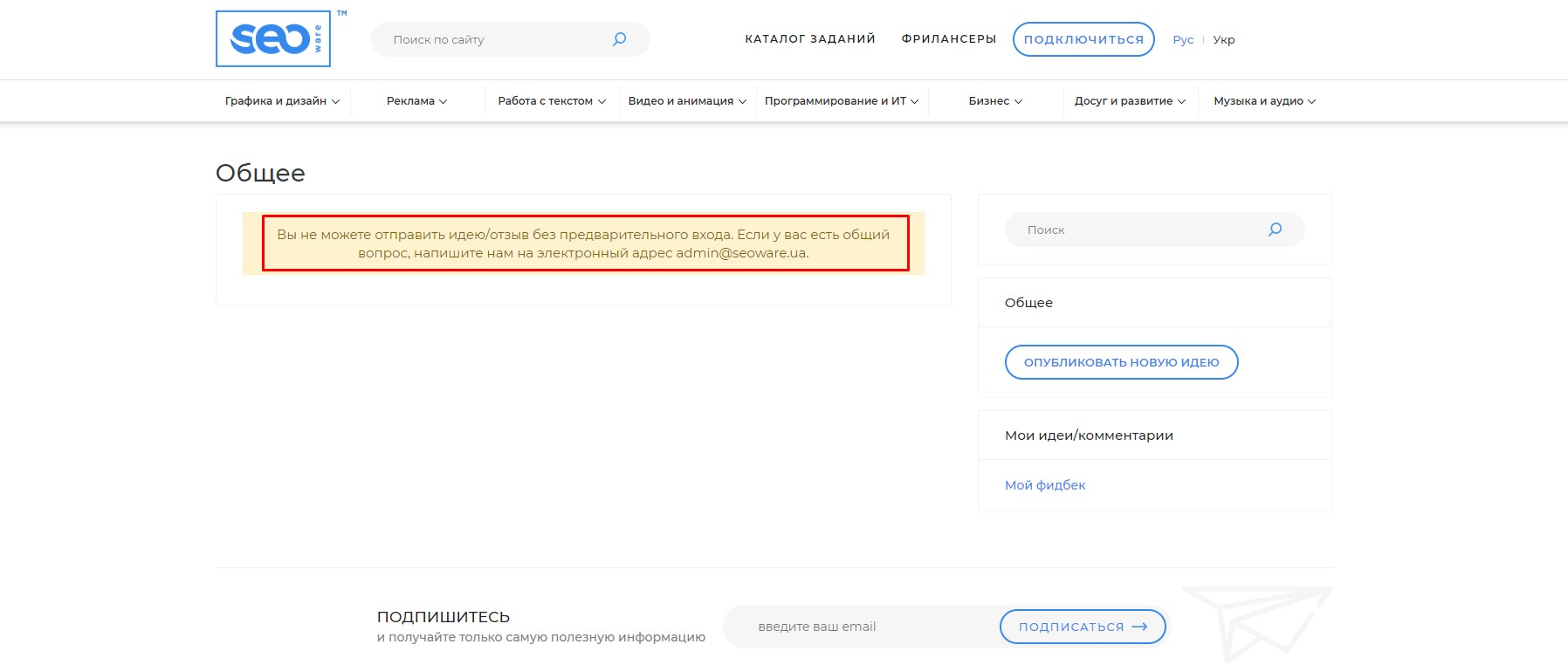 - кнопка "Опубликовать новую идею" - для публикации новосозданной идеи