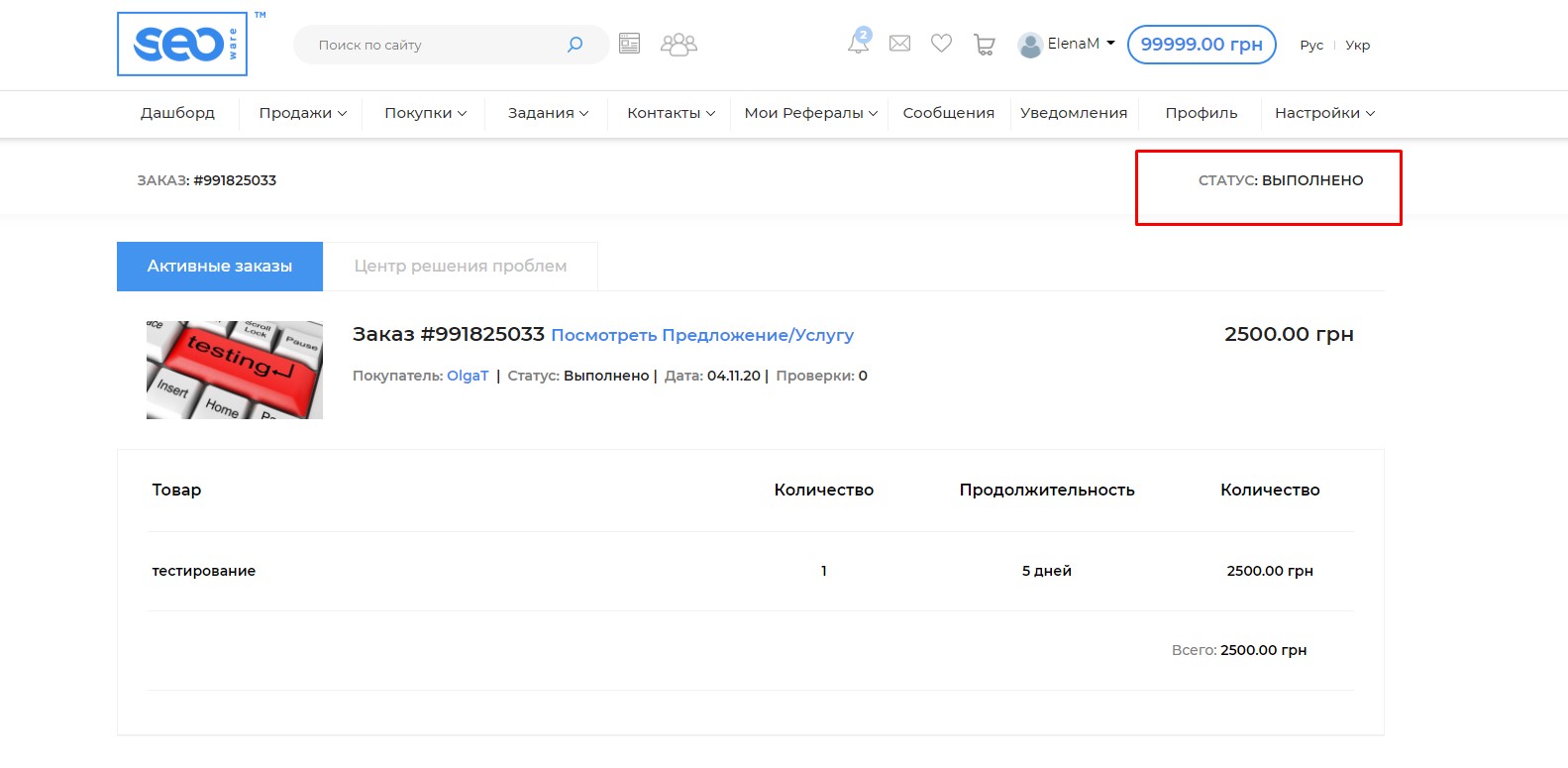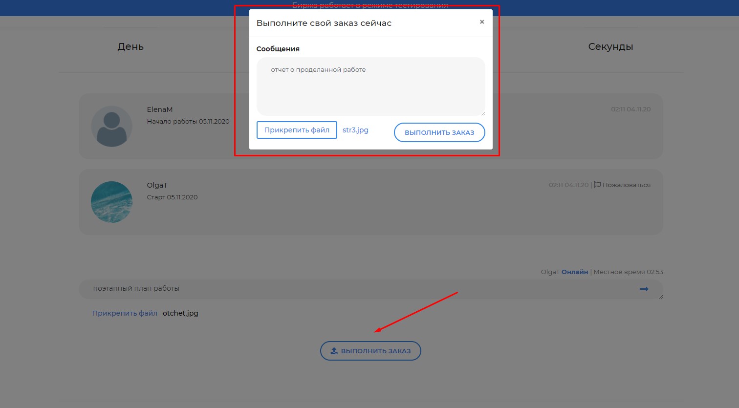 - подтвердите выполнение, нажав кнопку "Выполнить заказ"