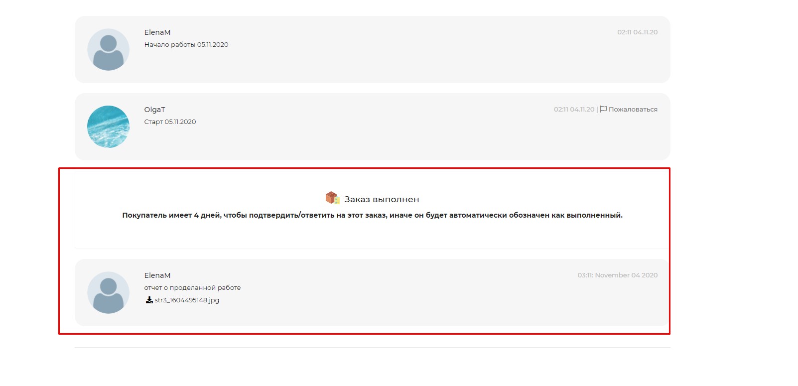 После подтверждения выполнения заказа: