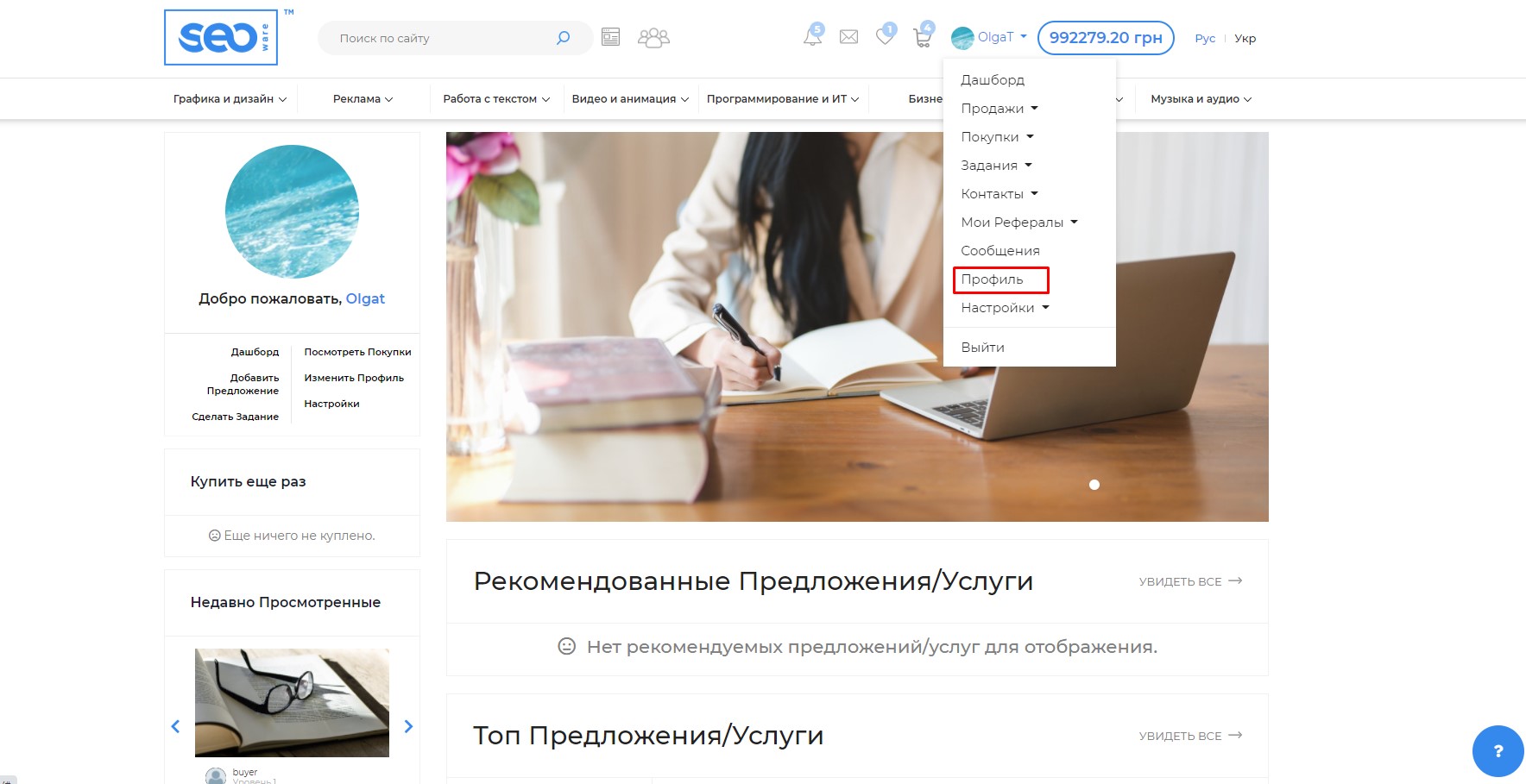 Для управления личным профилем перейдите в раздел "Профиль" в меню.