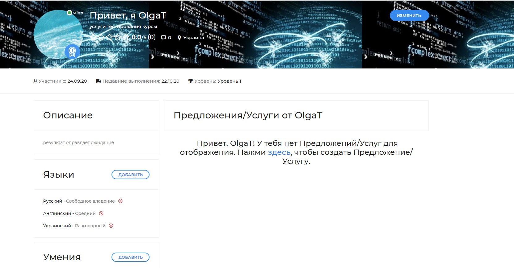Для изменения данных профиля нажмите на кнопку "Изменить", откройте вкладку "Настройка профиля" и внесите данные в нужные поля, далее сохраните. Более детально с настройками профиля можно ознакомиться в статье "Настройки пользователя".