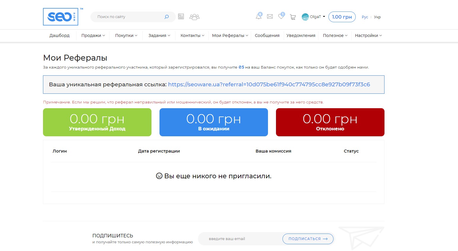 Разработанный функционал реферальной системы дает возможность контролировать реферальных пользователей и отслеживать реферальные предложения. В данном разделе доступны: