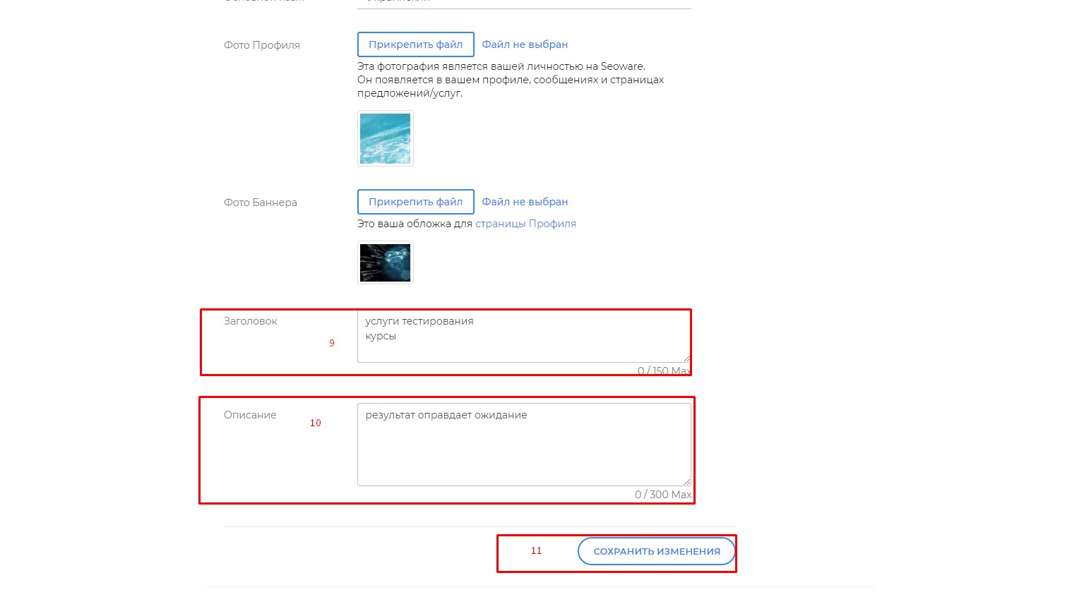 - выберите и прикрепите файл, который будет отображен в качестве фото Вашего банера