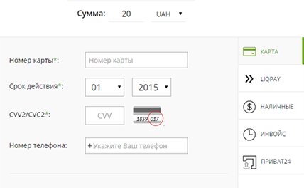 Моментальное пополнение баланса платежными картами Visa и Mastercard.